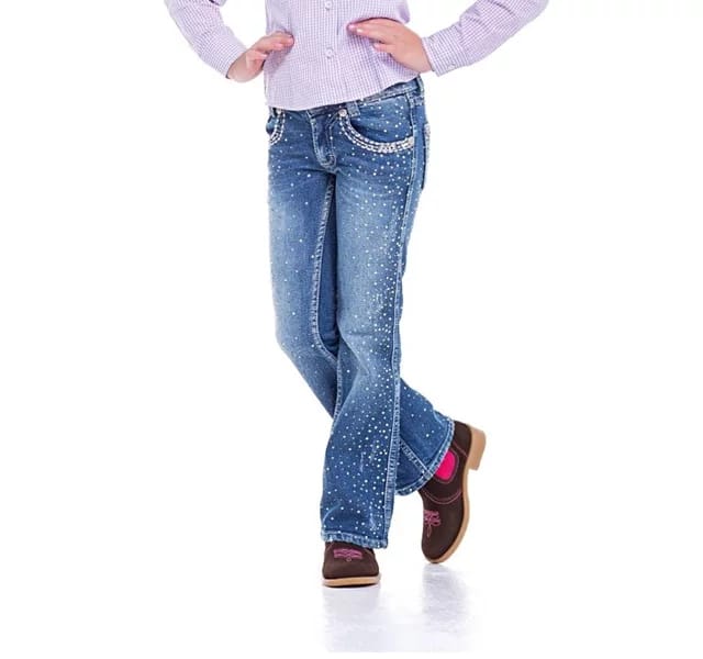 Modelagem Flare, com bordados de pontos decorativos rústicos no bolso traseiro e boca do bolso da frente em cores Off White e Branco.