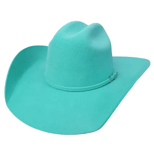 Chapéu Western Jeito de Cowboy 30x, confeccionado na cor Turquesa. Composto 100% de lã de carneiro, matéria-prima importada e produzido no Brasil pela Sibu Company. Produto rígido, engomado, confortável, macio, aveludado e agradável ao uso. Possui copa tradicional, aba 10 centímetros, carneira de PU e parte interna forrada em cetim.