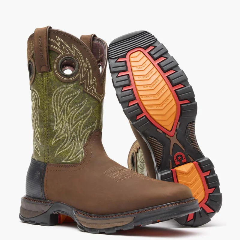 Bota em couro legítimo no pé, colarinho e puxadores, com cano sintético bordado. Conforto garantido. Estrutura leve, estável e resistente, ideal para uso diário ou montaria.