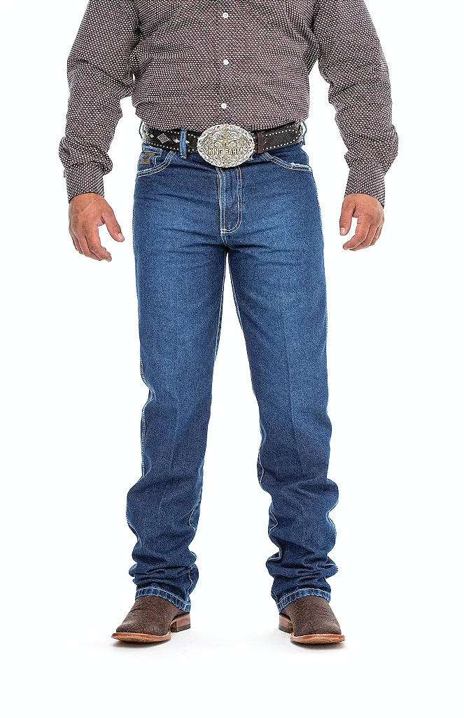 Confeccionada em tecido jeans 100% algodão de alta qualidade , cintura justa, coxa relaxada e perna no formato cônico. Possui 5 bolsos e acabamento com costuras reforçadas na cor branca. Botões e taxas personalizados. Acabamento diferenciado.